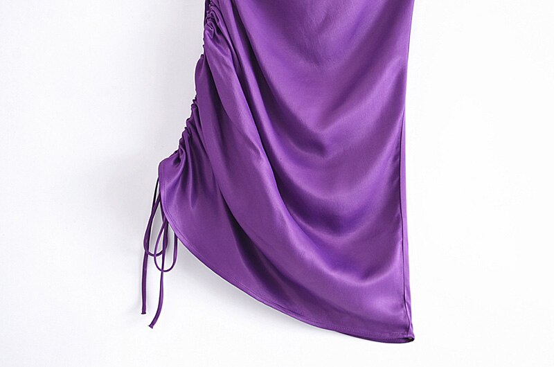 Women Sexy Spaghetti Strap Mini Dress Fashion Solid Color Side Pleat Drawstring Slim Dress Female Elegant Party Dress