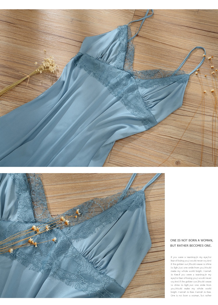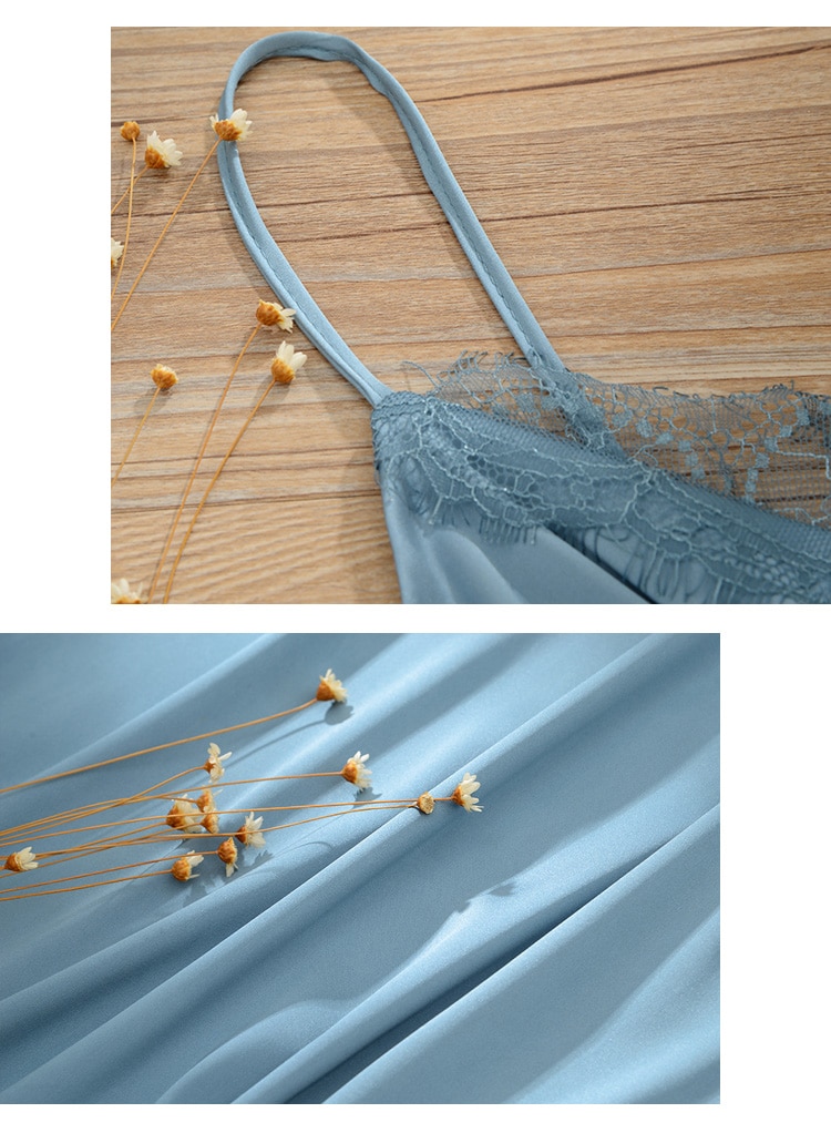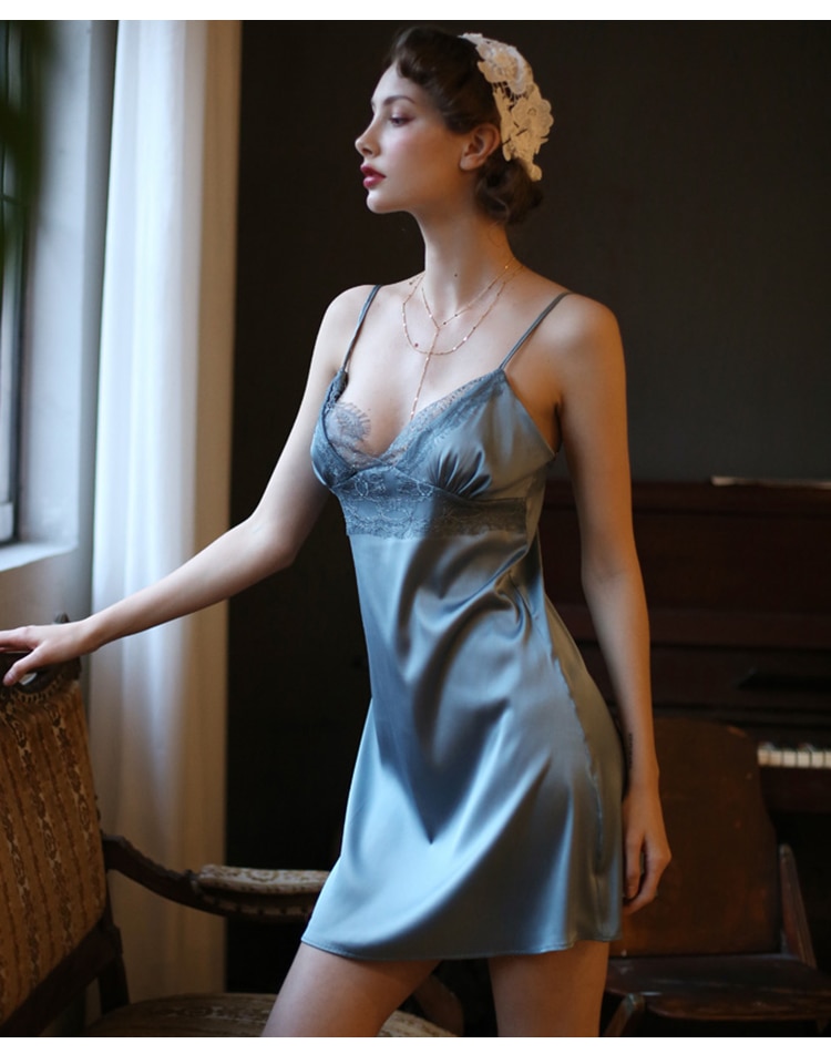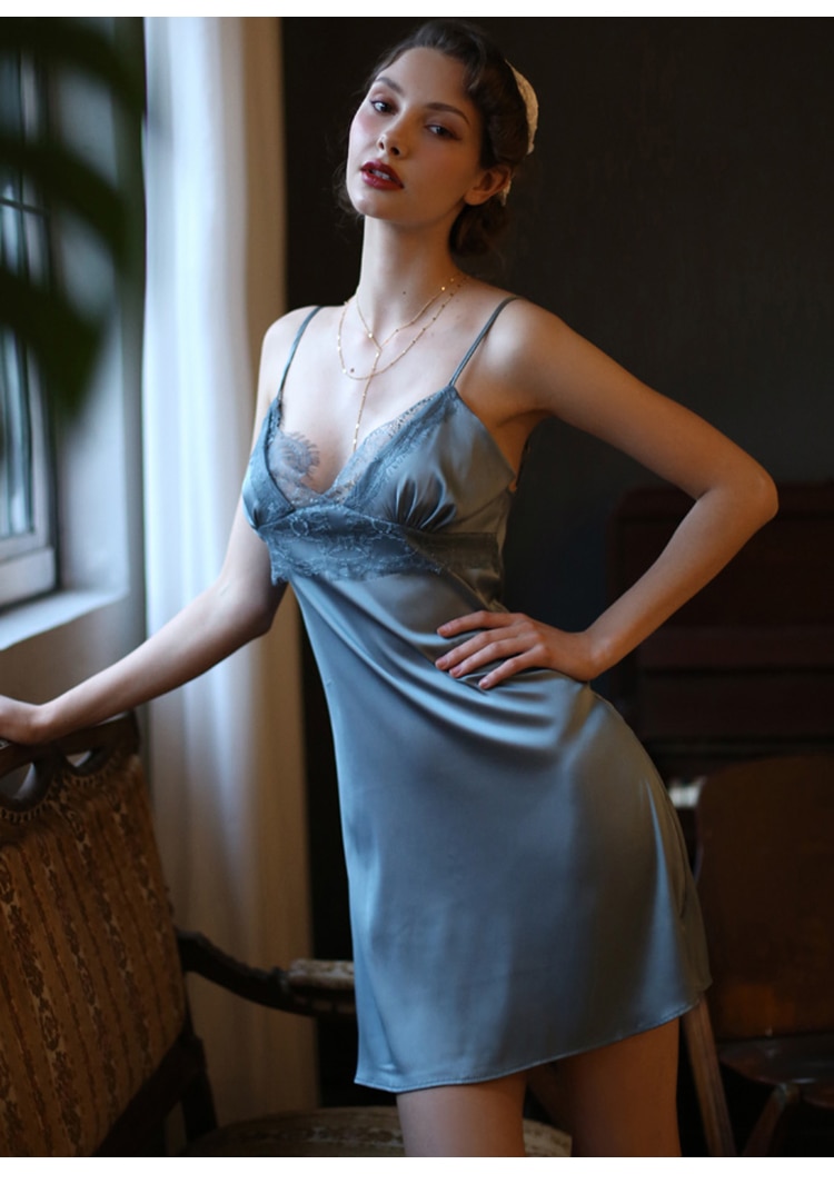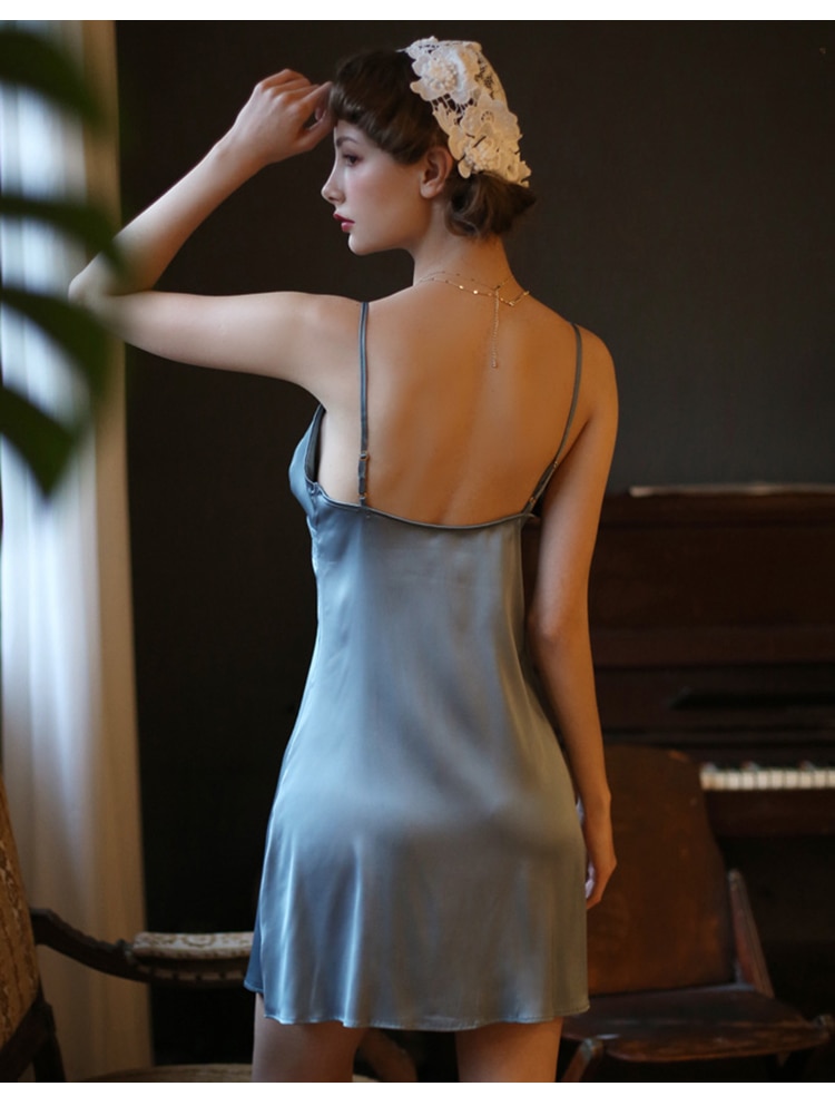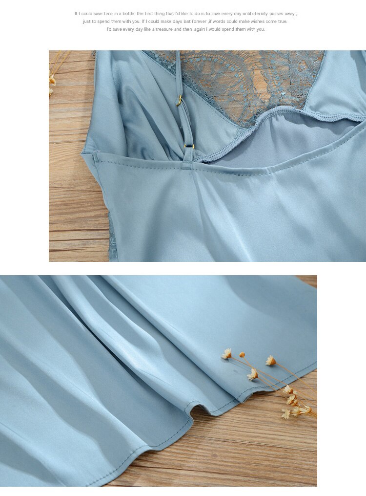 Women Sleepwear V-Neck Lace Nightdress Satin Homewear Backless Nightwear Thin Sleeveless Nightgown Female Night Dress M-XXL