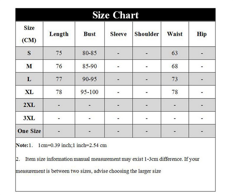 2.Please check the measurement chart carefully before you buy the item. (1inch=2.54cm)