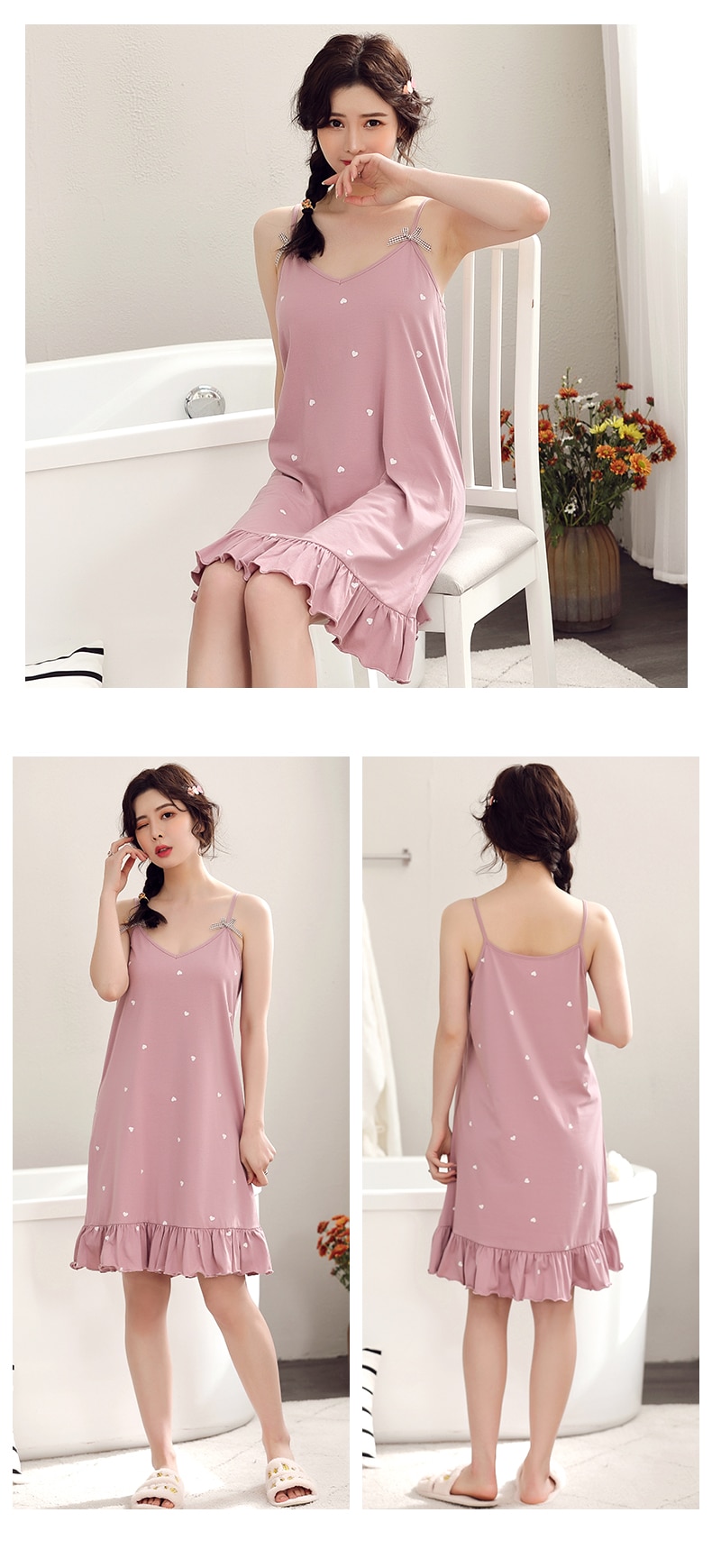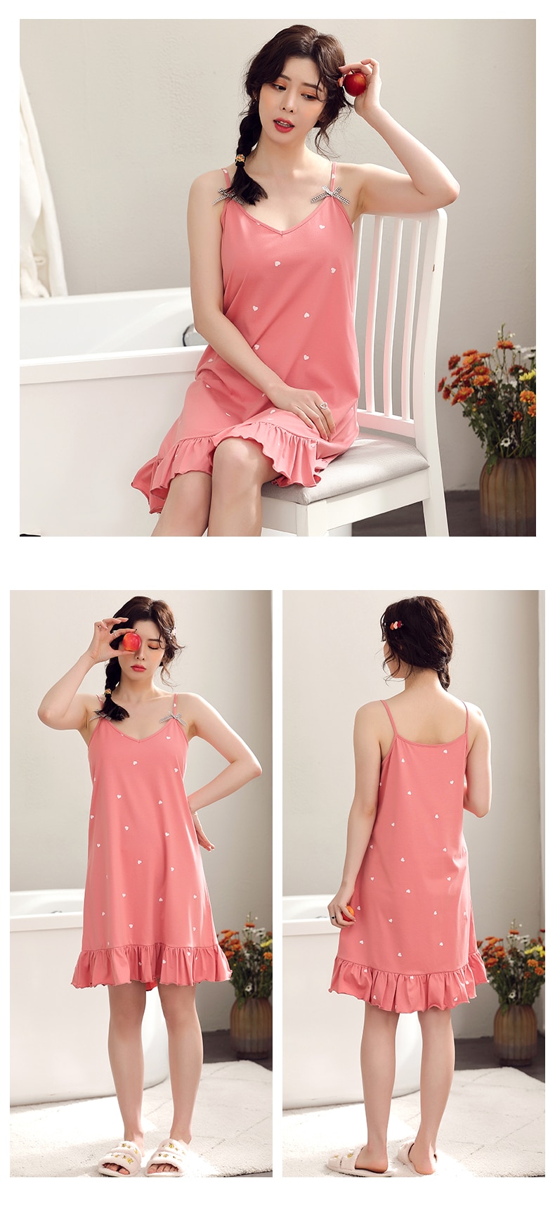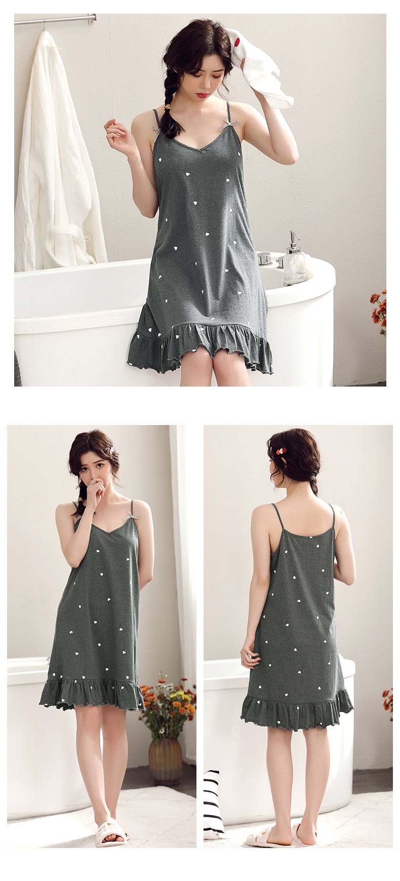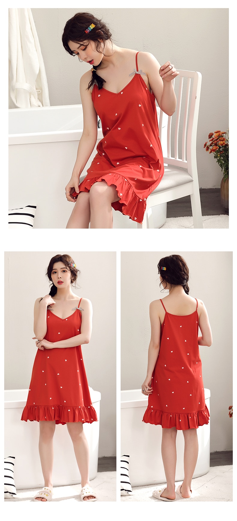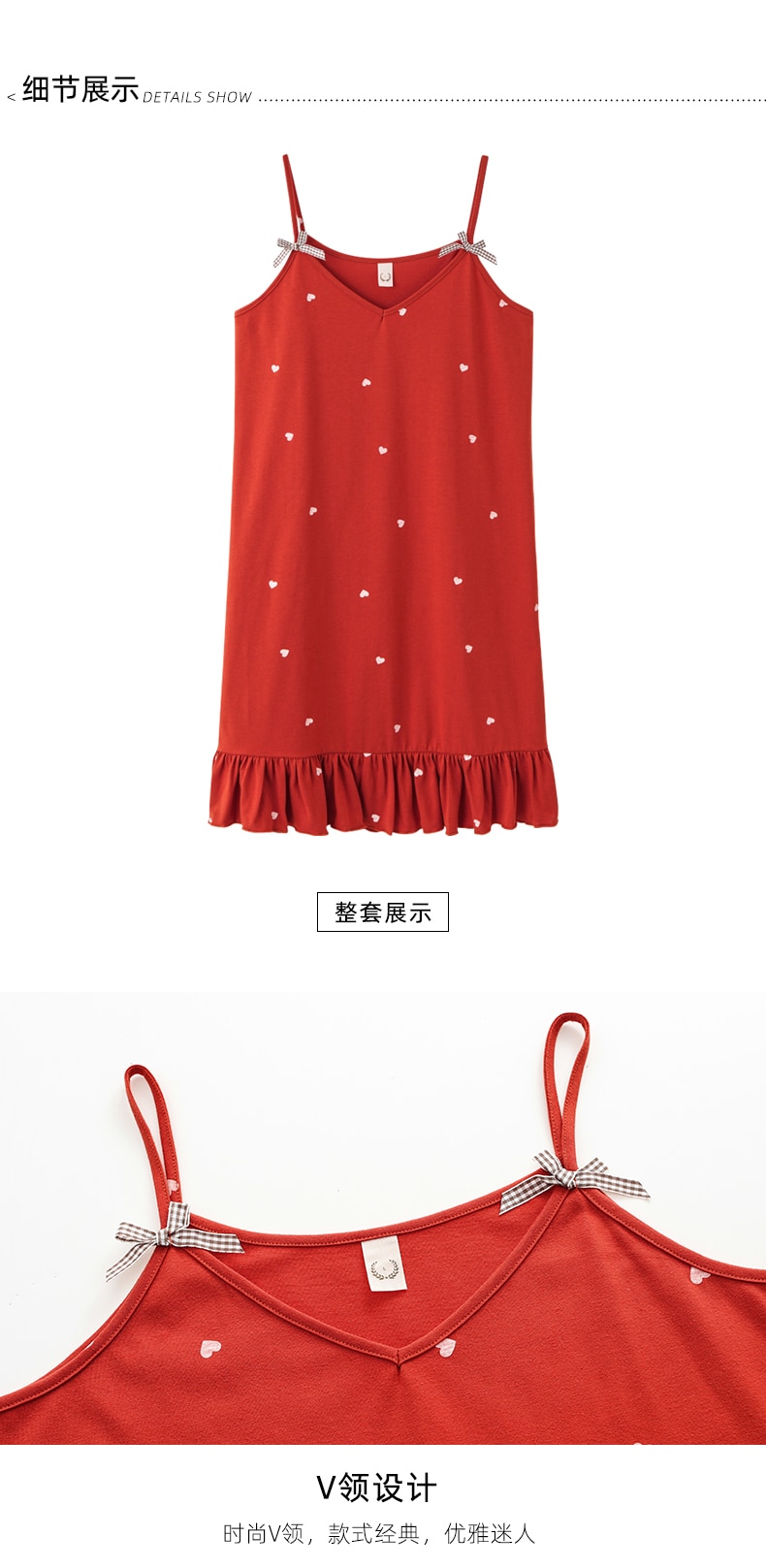 Women V-Neck Nightgowns Heart Print Night Dress Sexy Spaghetti Strap Cotton Casual Home Dress Night Shirt Sleepwear Nightwear