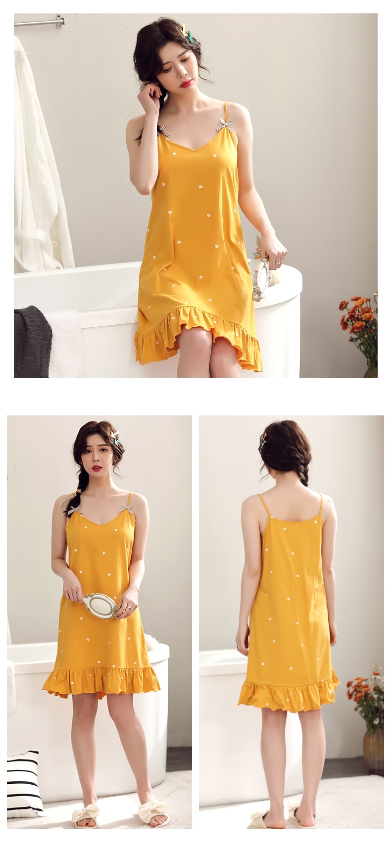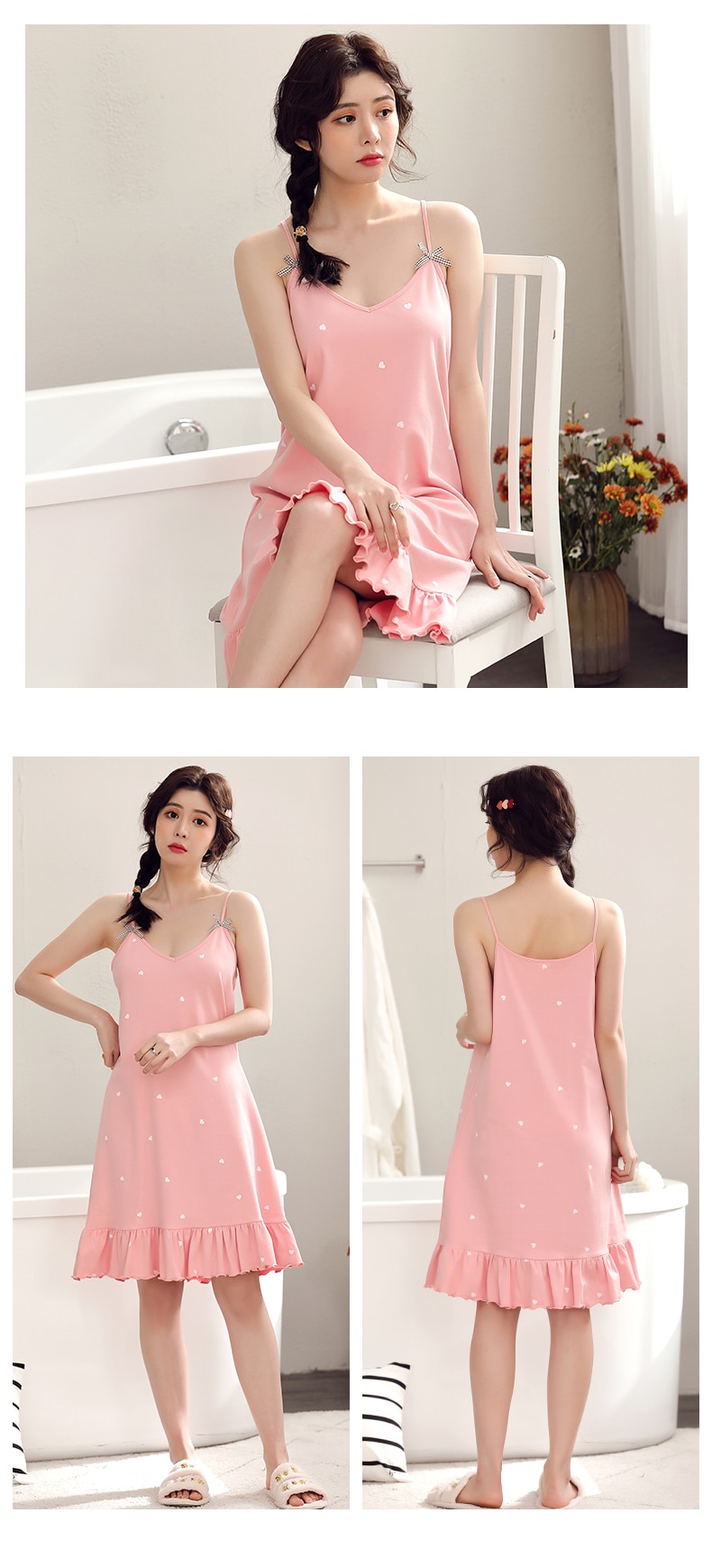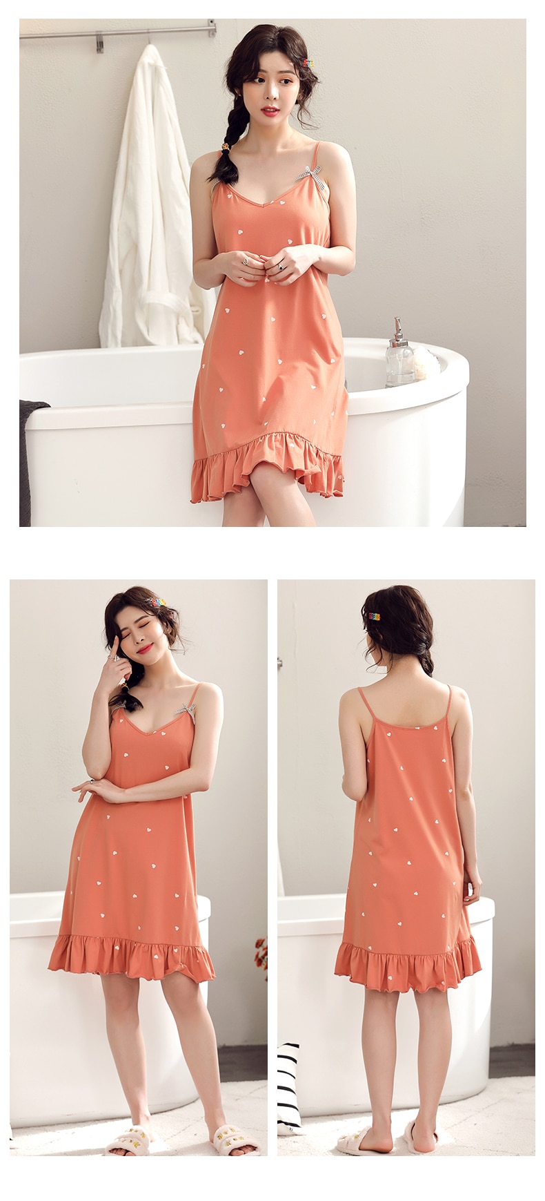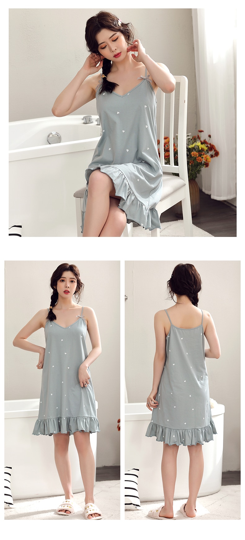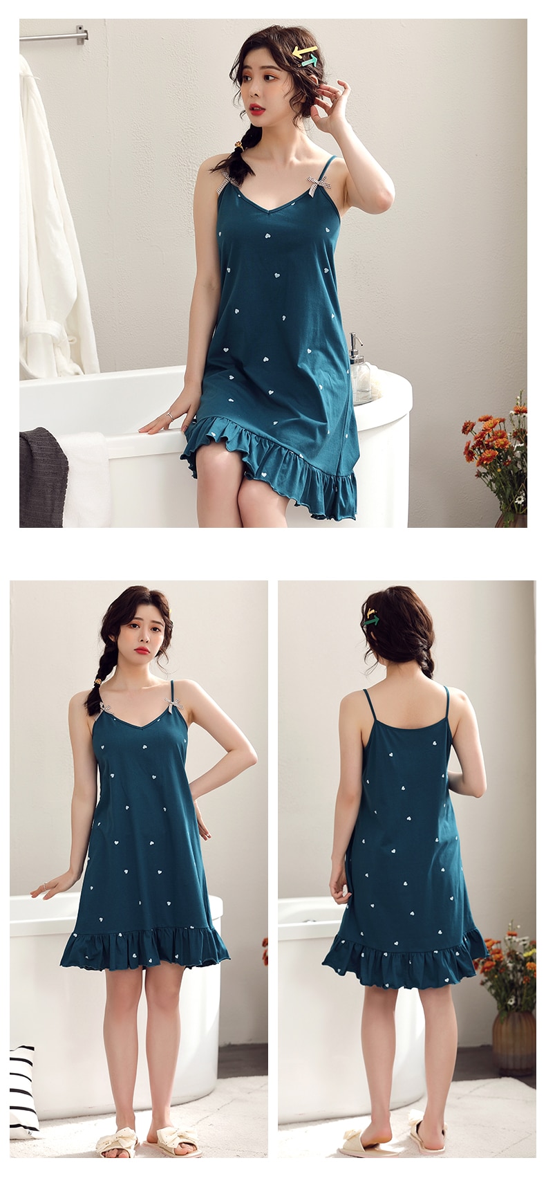 Women V-Neck Nightgowns Heart Print Night Dress Sexy Spaghetti Strap Cotton Casual Home Dress Night Shirt Sleepwear Nightwear
