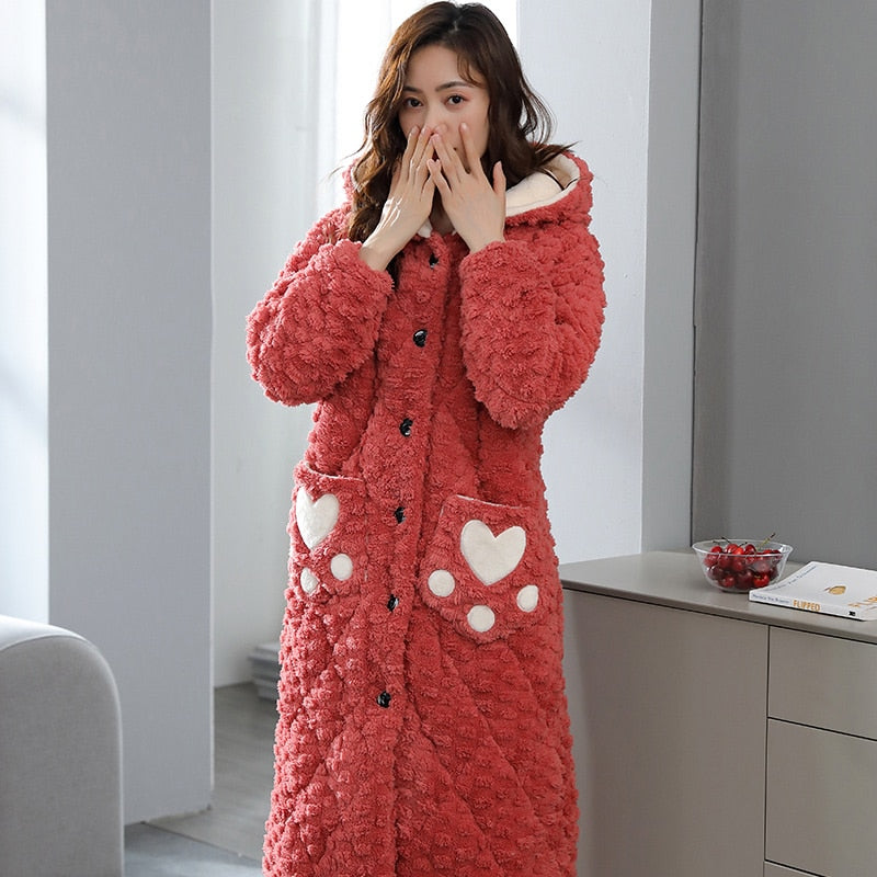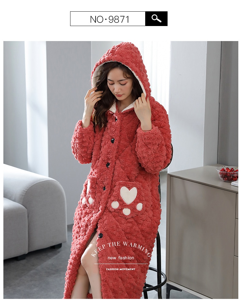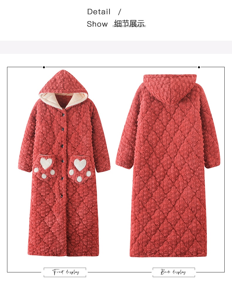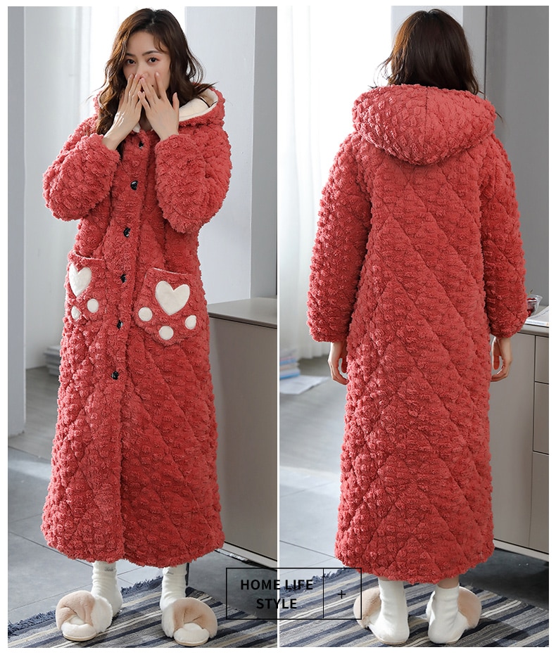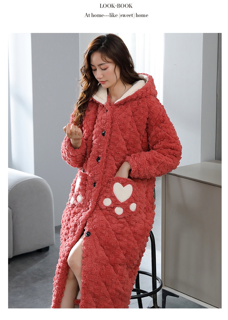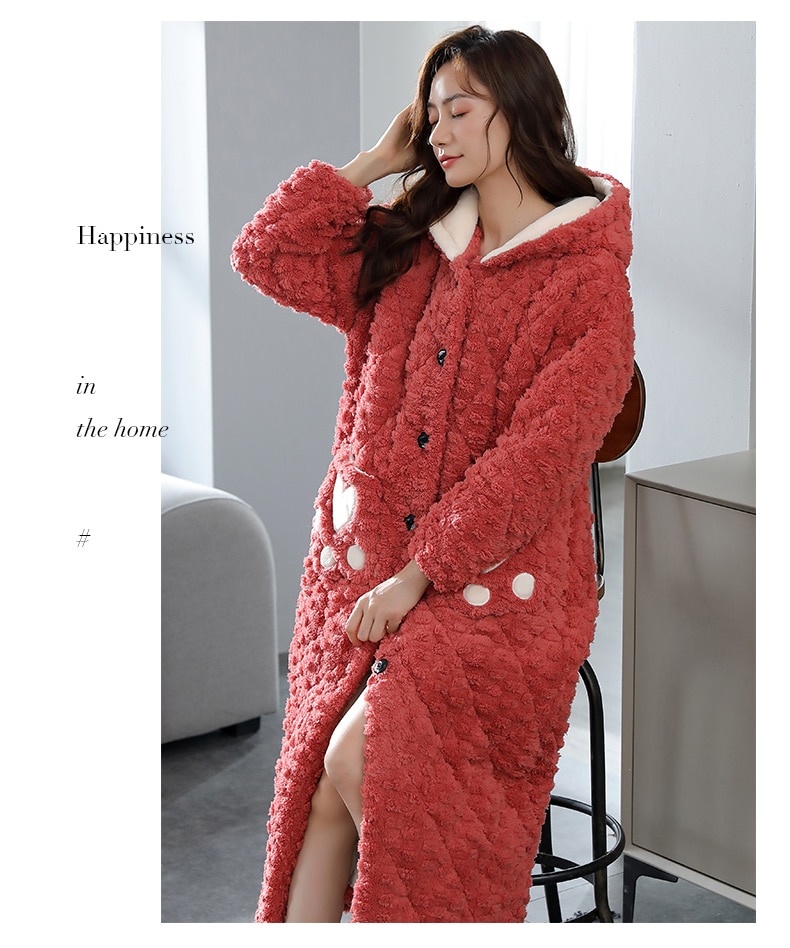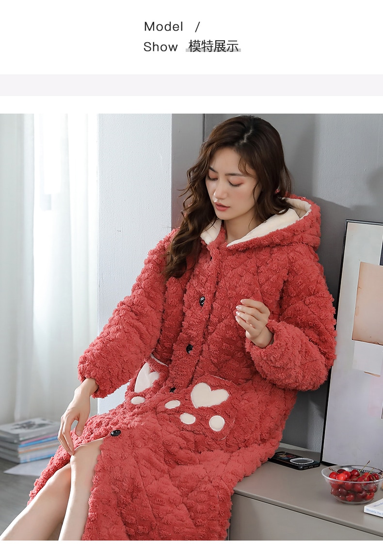 Women's bathrobe winter thickened flannel nightgown women's winter thickened pajamas cotton casual long robe set home service