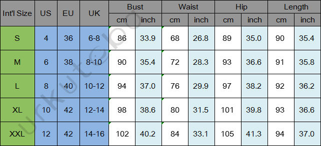| Product Size | Bust/Chest(cm) | Skirt length(cm) |