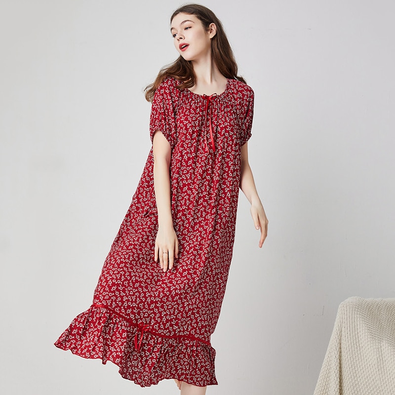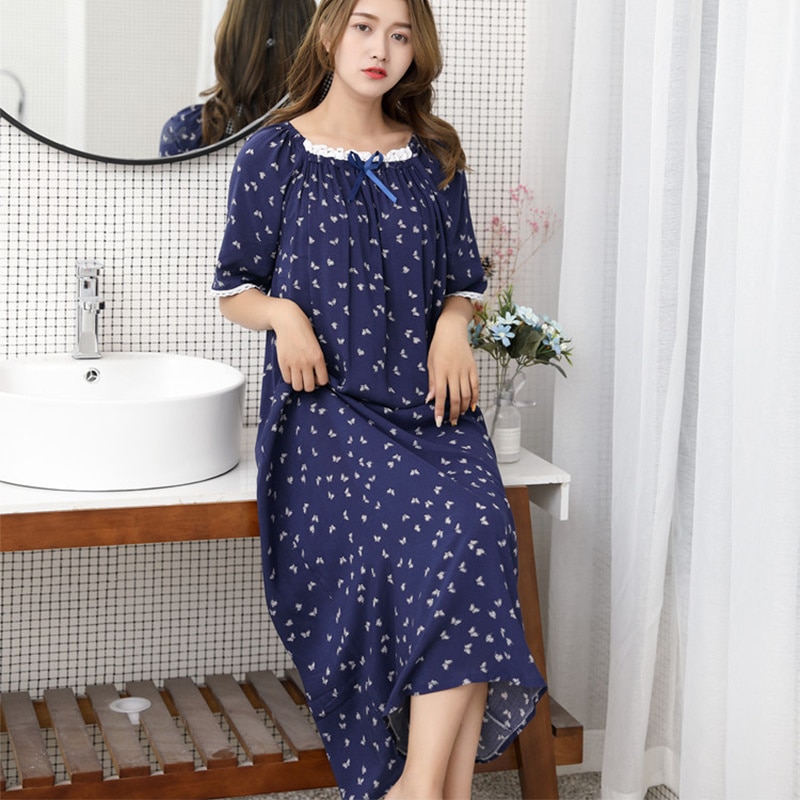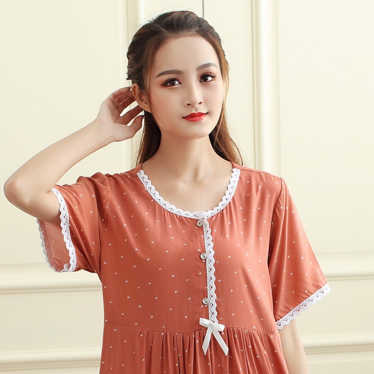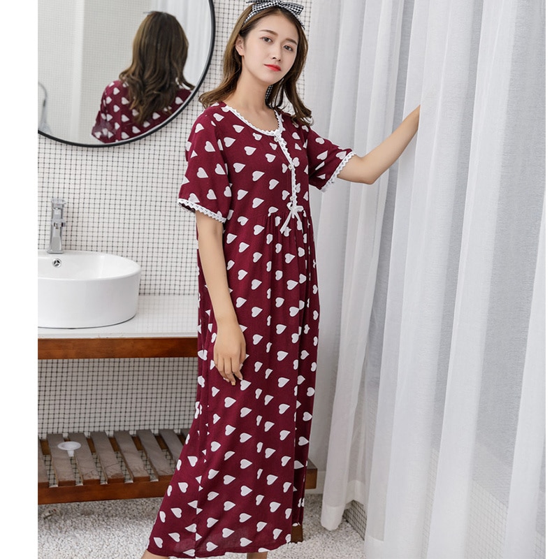 Women's Pajamas Cotton Short Sleeve Underwear Polka Dot Pajamas Women's Pajamas Loungewear Nightgown Plus Size Nightdress