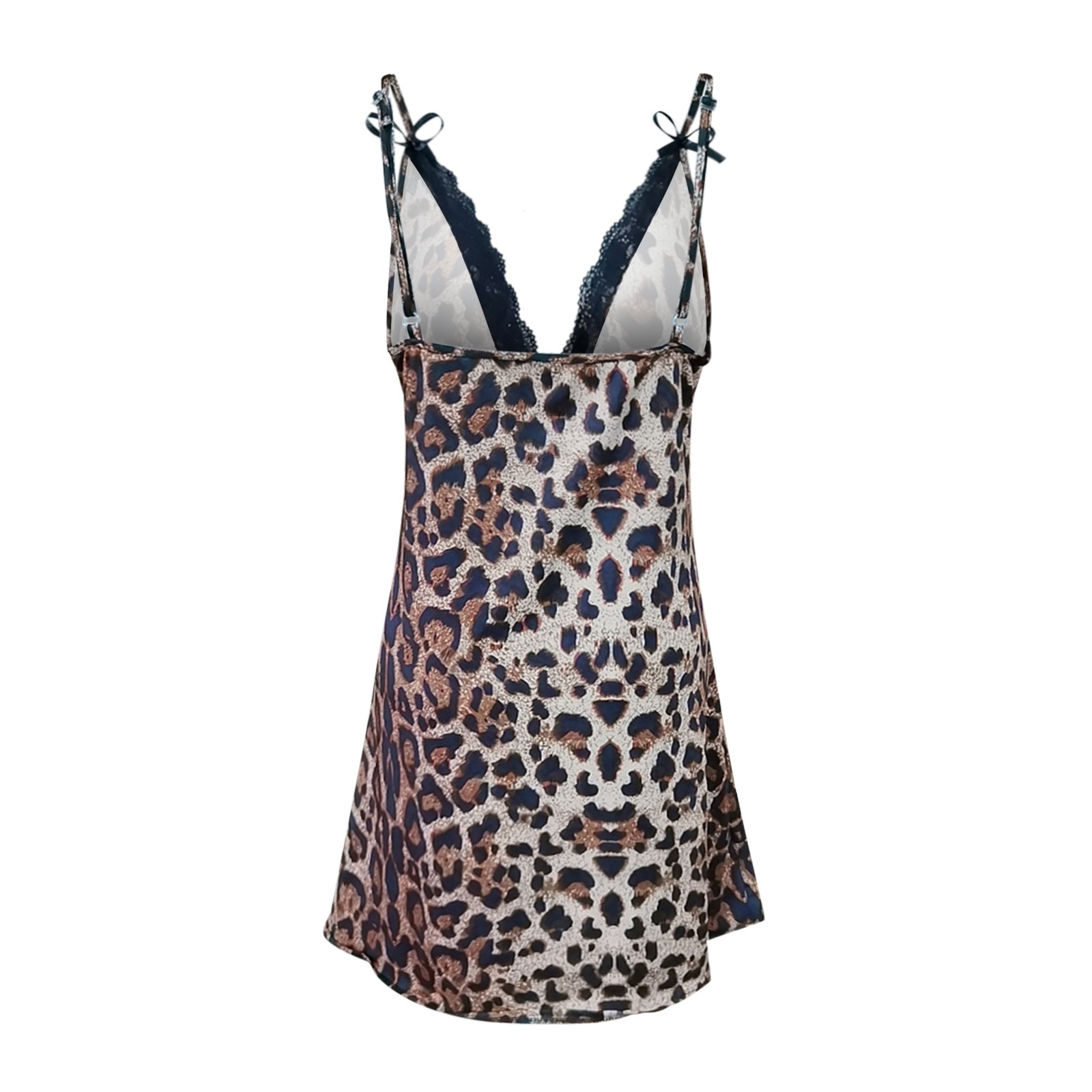 Sexy lingerie, leopard print suspender nightdress, passion, , lace bow, suit, flirting on bed