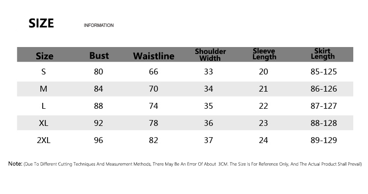 | Product Size | Bust/Chest(cm) | Skirt length(cm) | Waist(cm) |