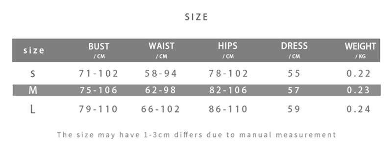 | Product Size | Bust/Chest(cm) | Skirt length(cm) |